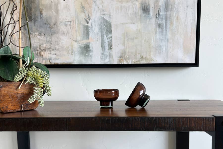 Introducing our Handblown Mexican Glasses in Tamarind - the perfect match for simple, understated, and no-fuss drinks. Sustainably handcrafted by our talented glassblowing artisans in Jalisco, Mexico, each glass is meticulously shaped while molten hot, preserving its distinctive character. Available in sets of 4 for both short and highball sizes, because great drinks are meant to be enjoyed together. Elevate your drinking experience with these exquisite handblown glasses. Cheers to sustainability and craftsmanship! Be sure to check out our entire Tamarind Glassware Collection, including Highball Glasses, Short DOF Glasses, Shooter Glasses, and a matching Pitcher! Care: Dishwasher safe - Susceptible to breakage with extreme temperature changes. Capacity: 400ml / 13 oz Dimensions: Each Glass - 3.25'' tall x 4.75'' diameter, set of two or individual.